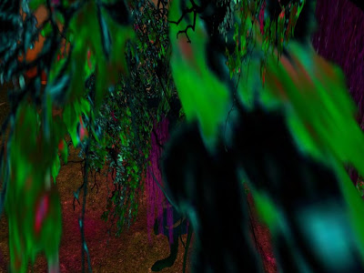 Je me demande toujours, lorsque je me promène sur Second Life... quelles sont les raisons profondes qui animent les créateurs de Sims... Qu'elles sont leurs motivations ?... Pourquoi et comment ils aménagent leur territoire ?... Quels buts poursuivent-ils ?... Quelle est la teneur de leurs rêves, de leurs délires créatifs ?... Qu'elle en est la consistance ?... Toutes ces interrogations m'ont envahie justement en découvrant cet endroit... (J'ai essayé d'y ajuster la lumière au maximum, mais la Sim reste très sombre... étrangement...)